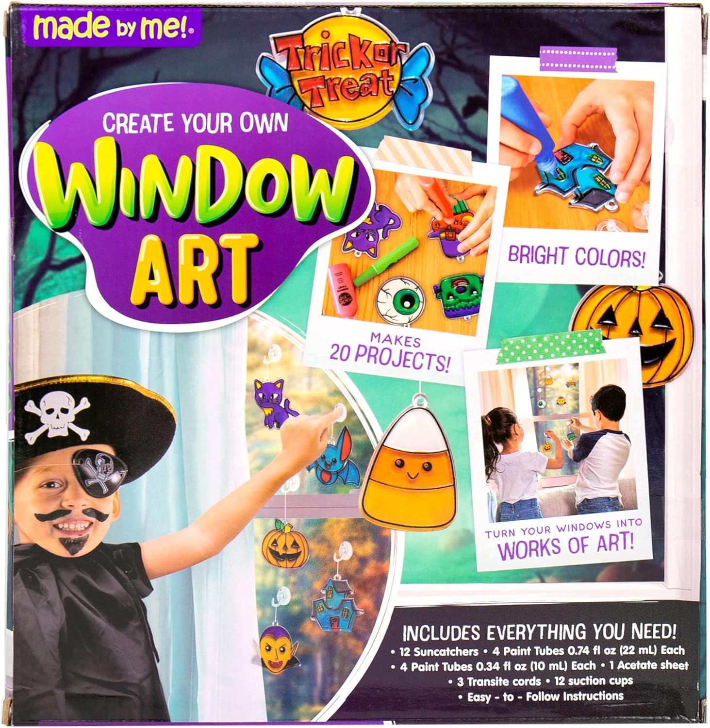 Craft your way into the spooky season and Create Your Own Halloween Window Art with Made By Me. From spooktacular suncatchers and creepy cute window clings to paint tubes, suction cups, cording, and easy-to-follow instructions, this DIY window art set has everything you need to create 20 scary cool projects that glow-in-the-dark! Mix & match 8 paint colors to fill 12 different suncatcher frames — pick from designs like candy corns, haunted houses, Frankenstein, Dracula, jack-o-lanterns, and more! Once you’ve painted all your suncatchers, design original window clings with the included acetate sheet, where you can use the paint tubes like pens and trace freaky fun! Once your designs dry, use the provided suction cups and cording to transform your windows into works of art — as the sun shines through your designs, they’ll all come alive! Painting is a great way to strengthen fine motor skills and encourage creative expression, all while having fun! Recommended for ages 6+.