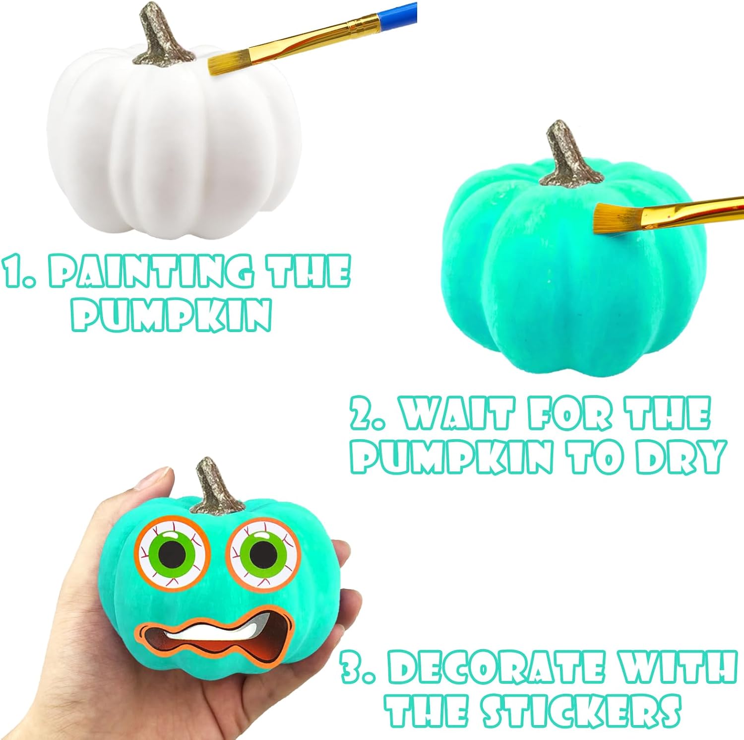 【Realistic Fake Pumpkins】- The fall craft pumpkin painting kit for kids is made of high-quality plastic and foam, the artificial pumpkins for decorating are smooth to the touch, lightweight and durable, and look realistic in size, color, texture and shape. Decorate your home with these foam pumpkins for a warm fall decor.