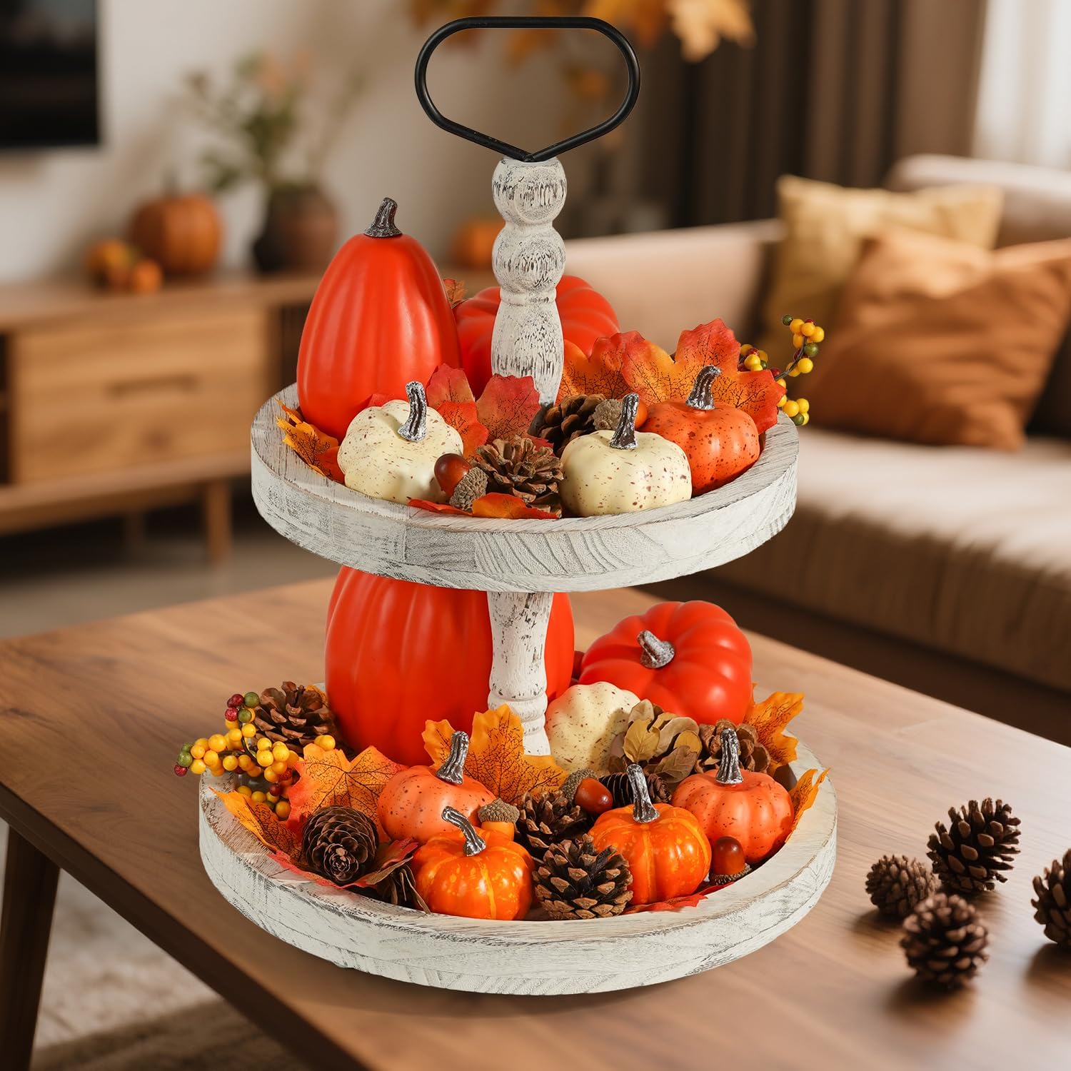 There are 9 pumpkins with 3 different colors, 30 pieces of assorted maple leaves, 4 pieces of pine cones, 6 pieces acorns, 2 pieces of autumn orange berry stems. There are 51 items in total, which can meet your various needs.