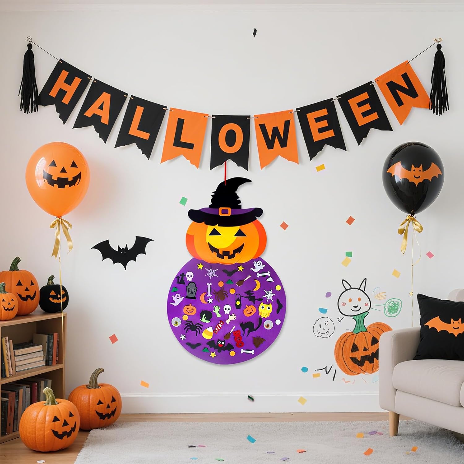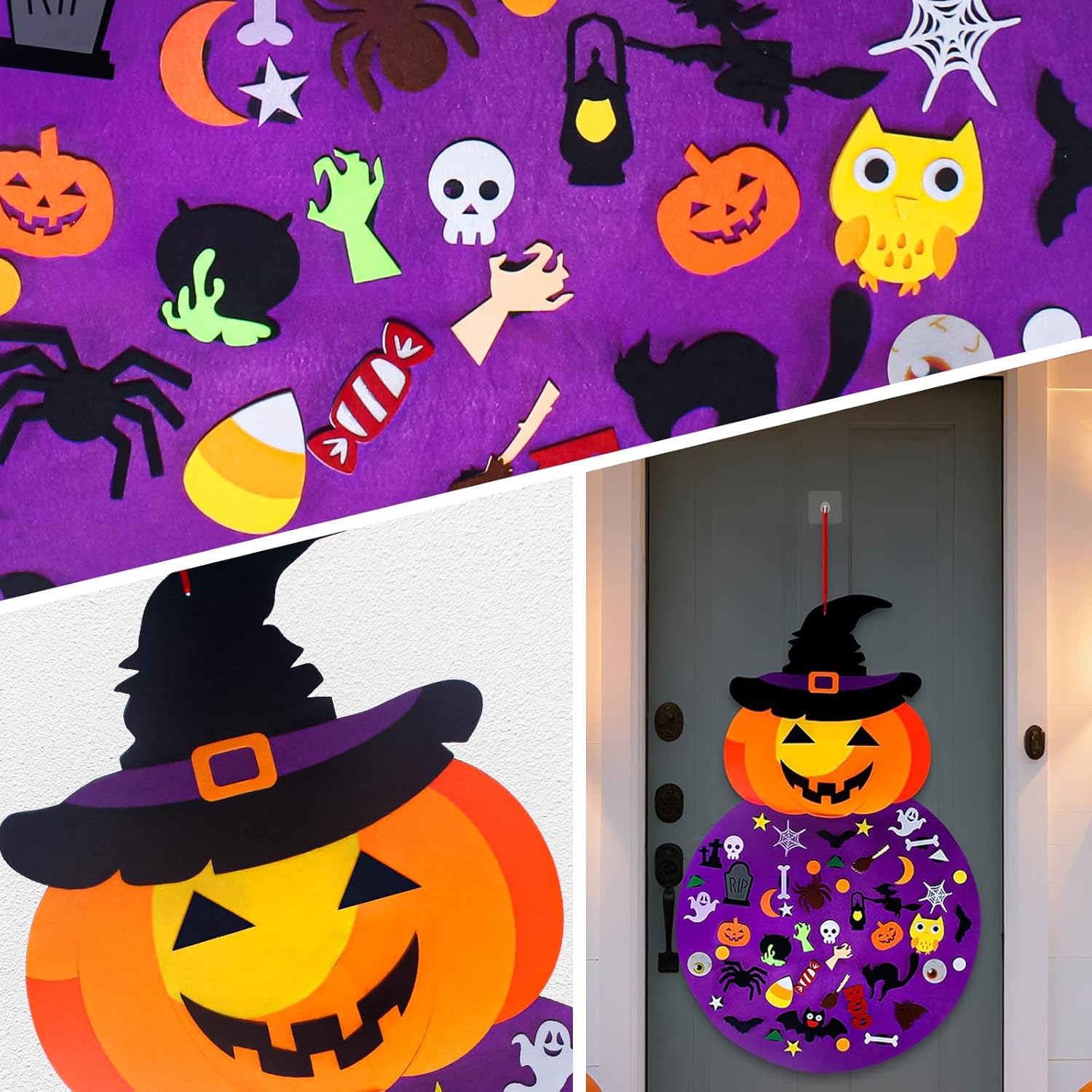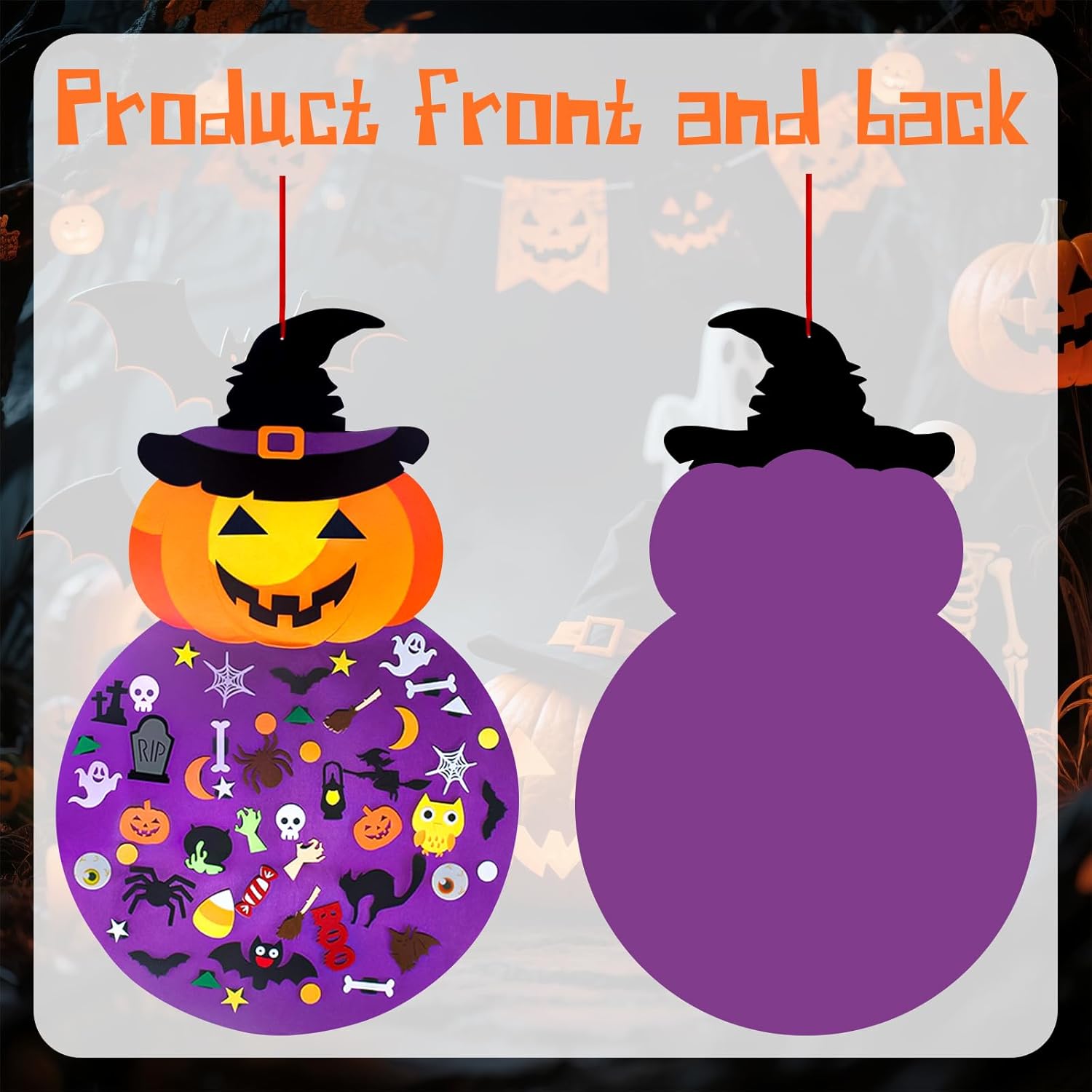 JUN-ELECTRON DIY Halloween Pumpkin Witch Hanging Decor for Kids Adults, Felt Craft Kits Adhesive Decorations Wall Ornaments Gift Party Favor Indoor Outdoor (Pumpkin)