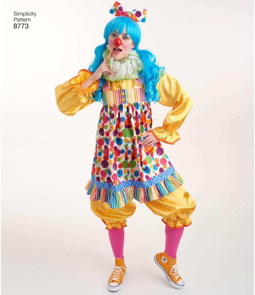 Simplicity 8773 adult clown costume sewing pattern is proudly made in the USA with instructions available in English, Spanish, and French.