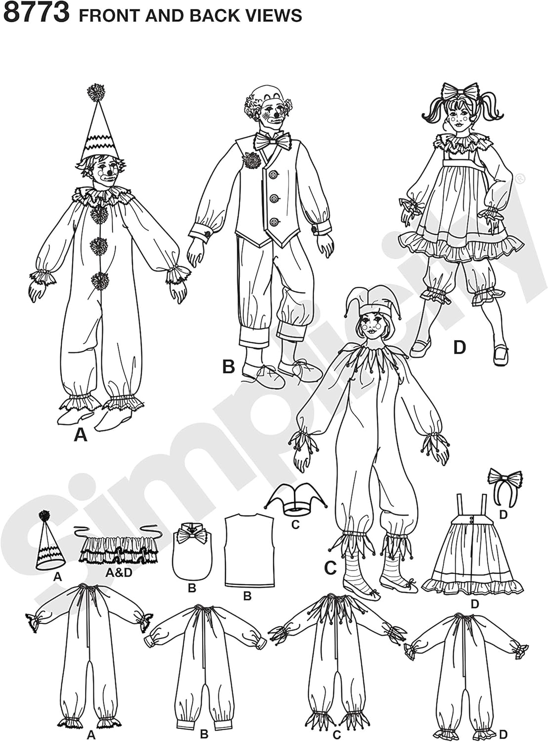 Includes sewing templates, sizing guidelines and easy to follow instructions to create (4) different unisex clown costumes.