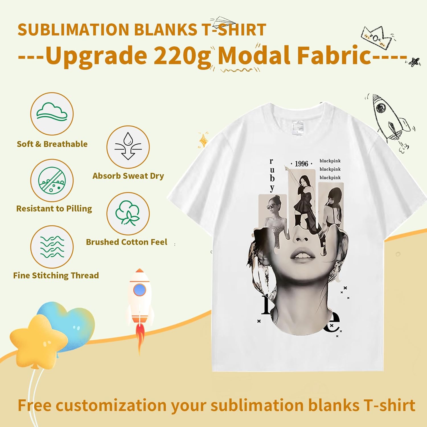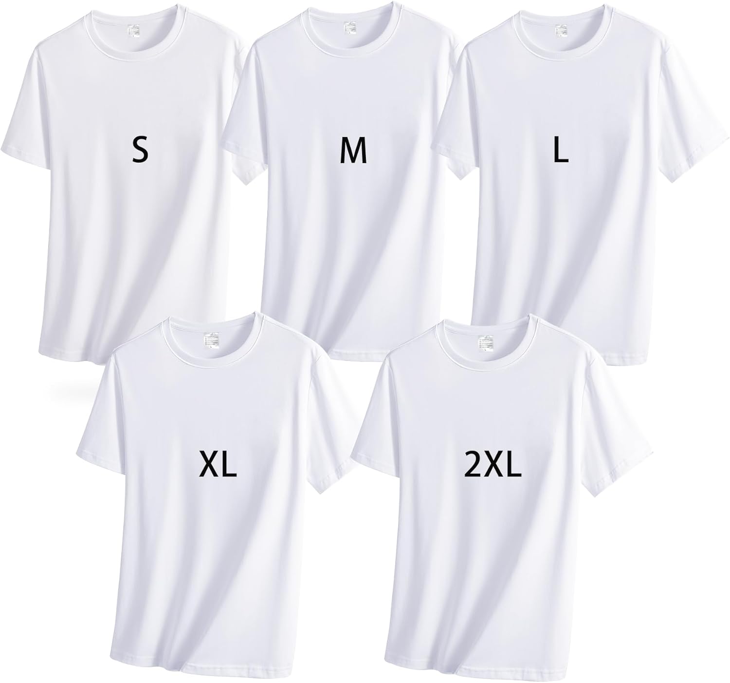 5 Pack Unisex Sublimation T-Shirts Blank,Sublimation White Polyester Short Sleeve Shirt for Men & Women, 5 Size