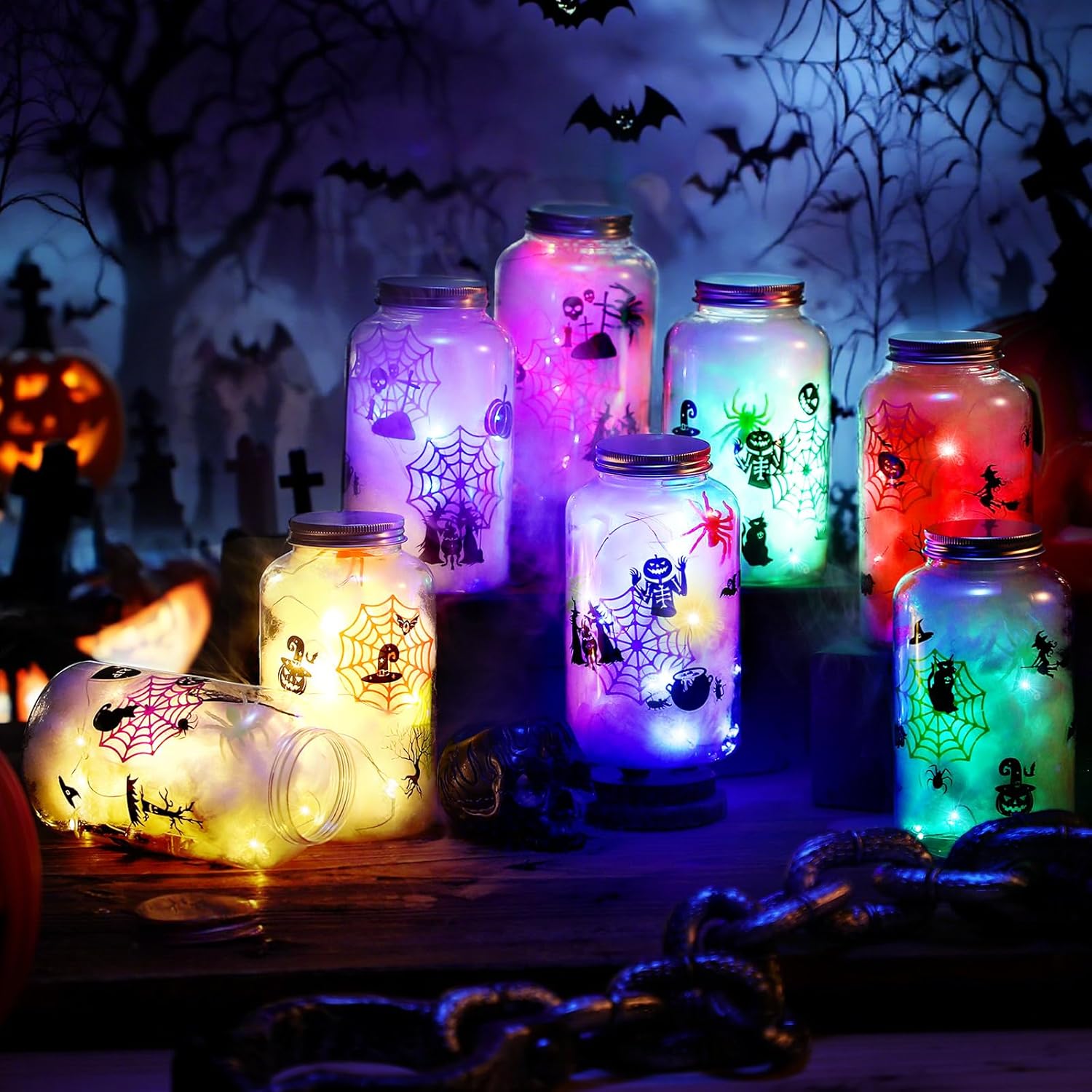 Halloween Theme Design: our Halloween DIY Craft decorations include stickers featuring designs of bugs, spiders, spider webs, and more The versatility and creativity of these stickers are endless Use them to decorate your clear bottle, or customize your jars for a fun, creative experience