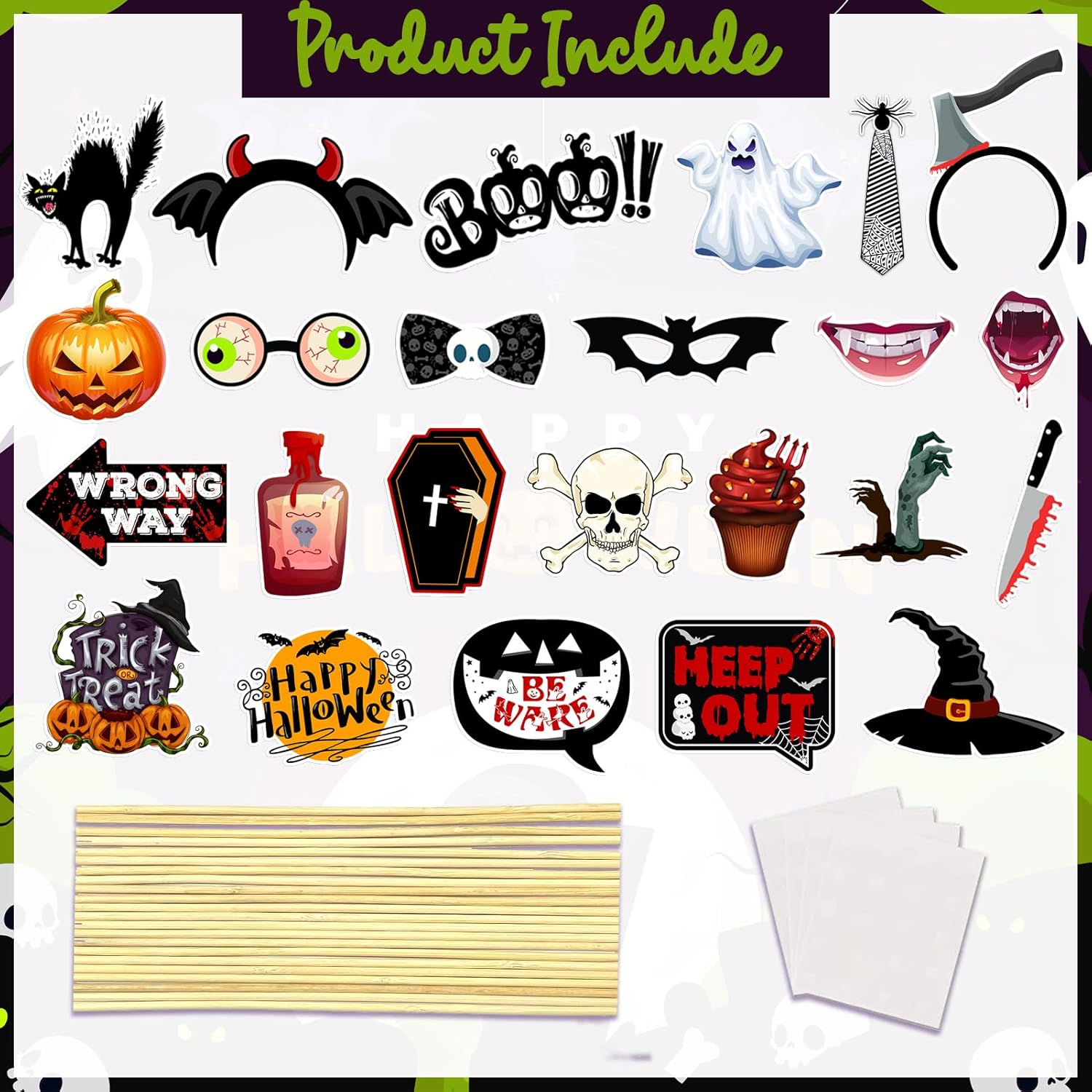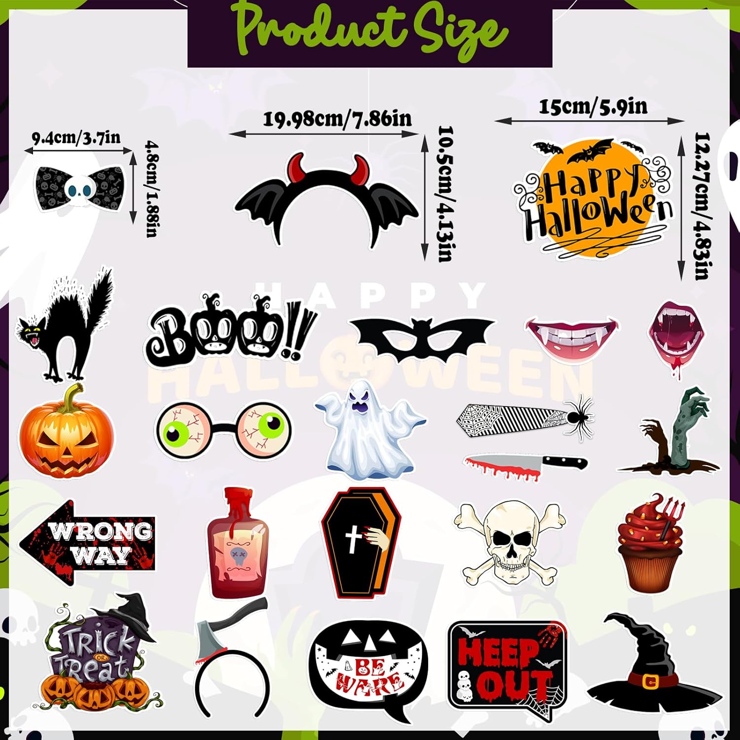 24-Piece Spooktacular Fun: Get everything you need instantly! This complete kit includes 24 unique, vintage-inspired Halloween props like vampire fangs, skull masks, witch accessories, glasses, signs, and more for endless photo booth laughs