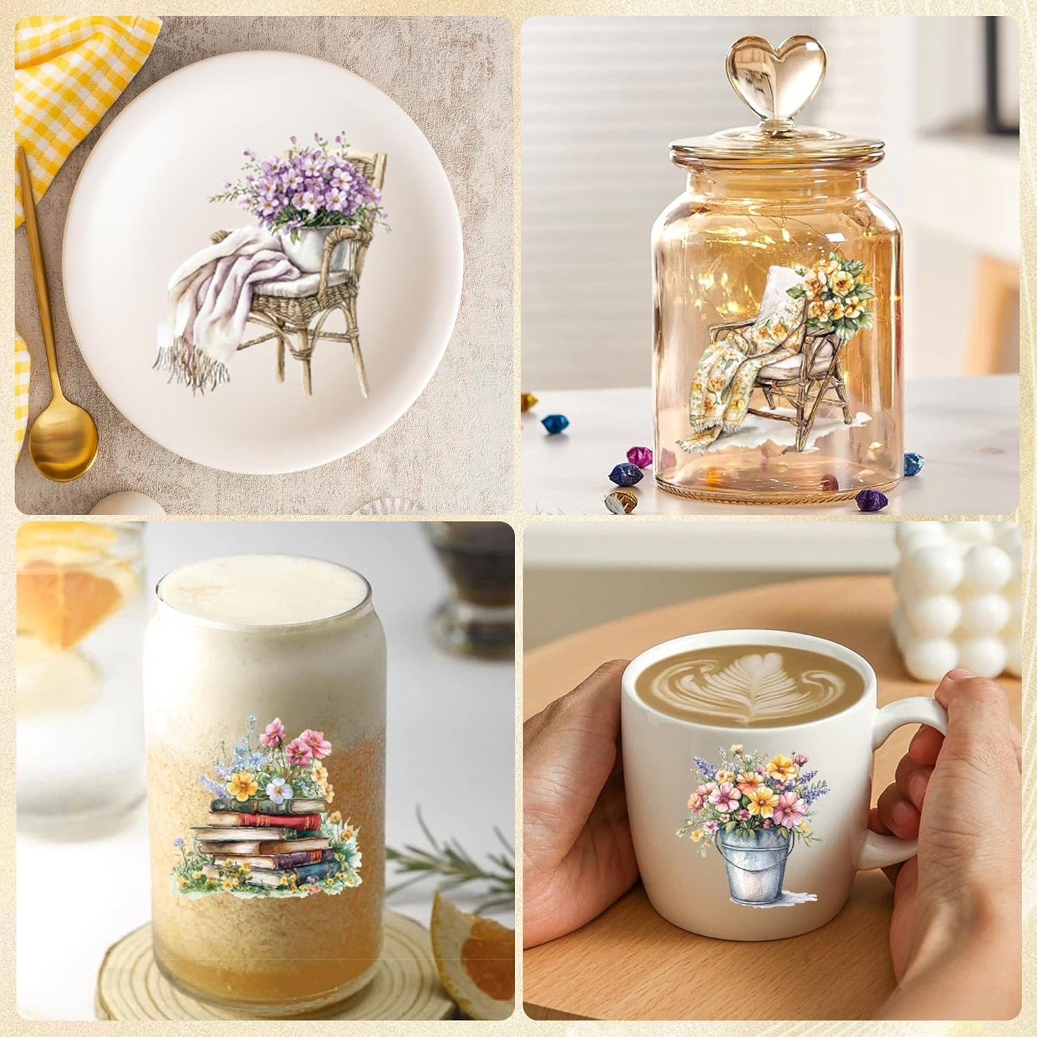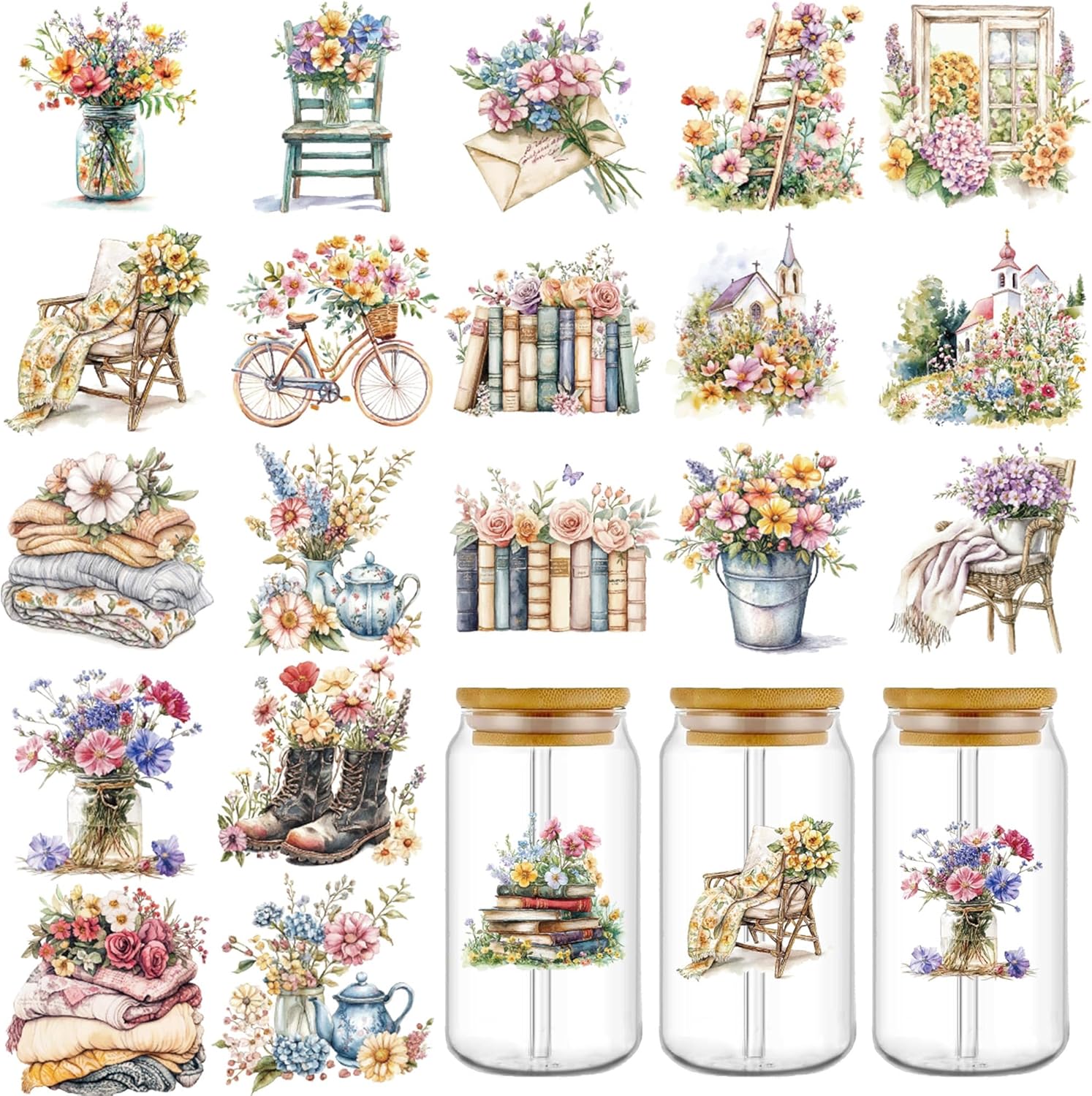 Charming Floral Artwork: Each sheet features vivid watercolor floral uv dtf cup wraps that instantly add a touch of nature-inspired elegance to your cups, tumblers, and glass drinkware