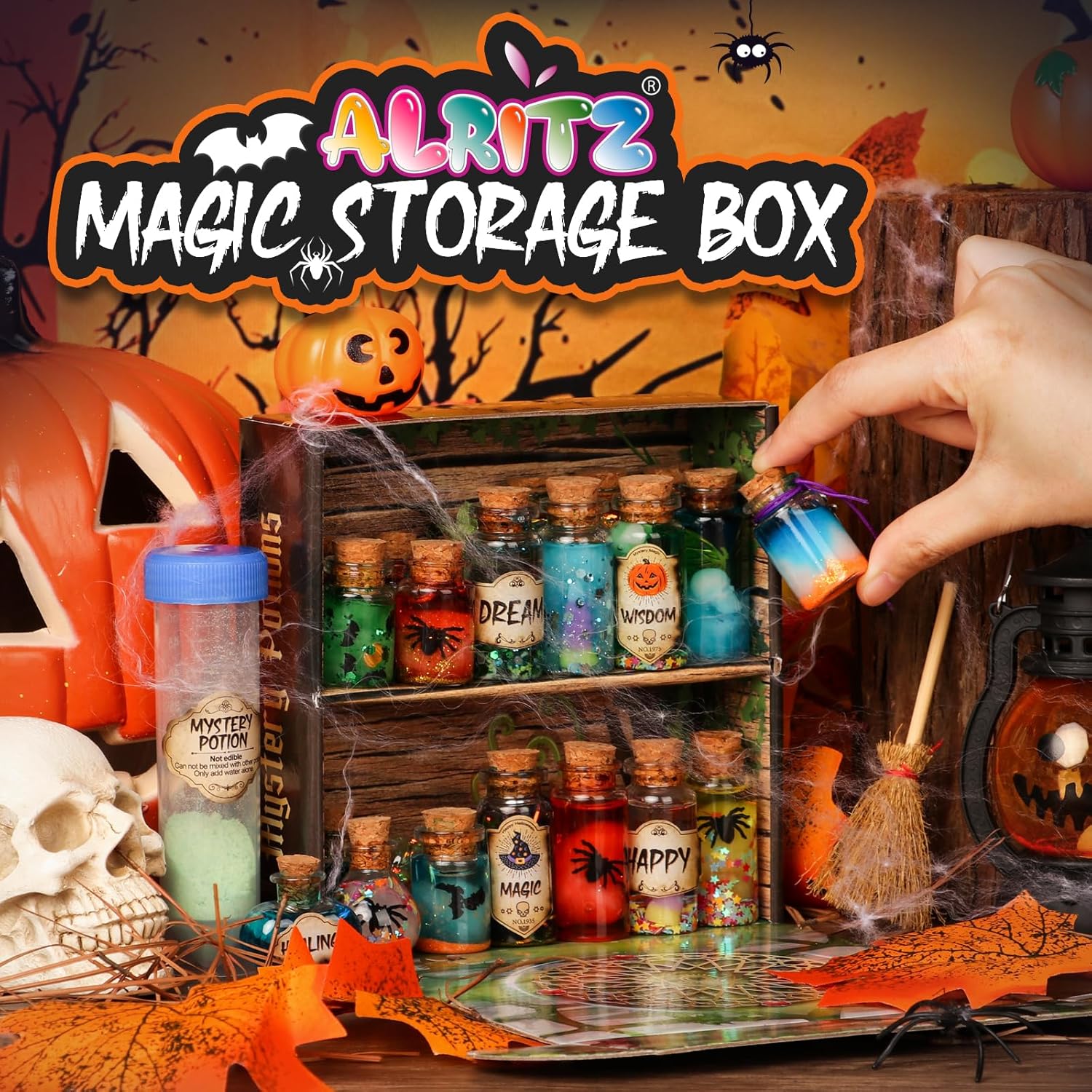 Alritz Mystery Potion Kits for Kids, 20 Magic Mix Witch Potion Bottles, Happy Decorations Ornaments Pumpkin Table Craft Toys Gift for Boys Girls Age 6 7 8 9 10 11+ Indoor Outdoor Halloween Party Decor