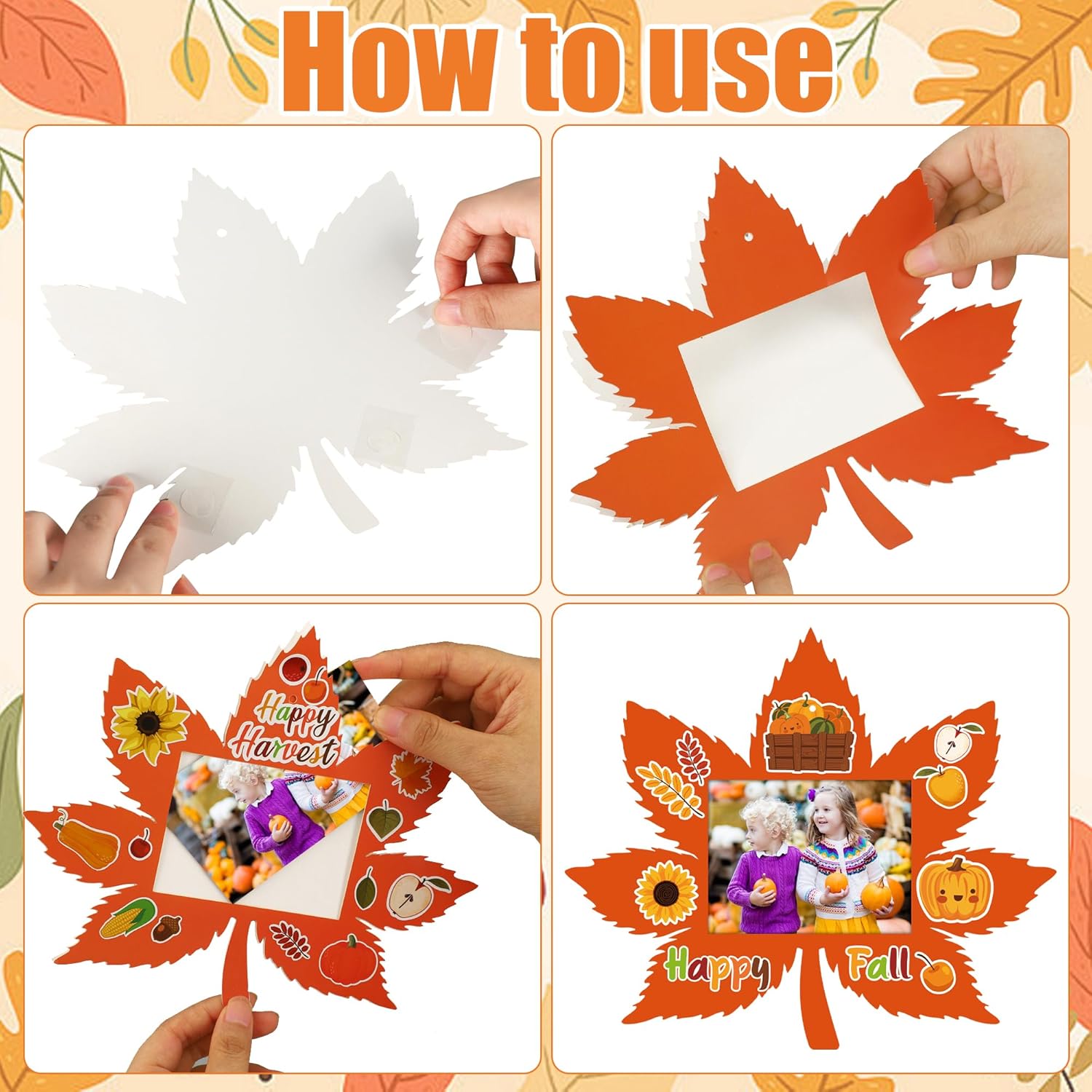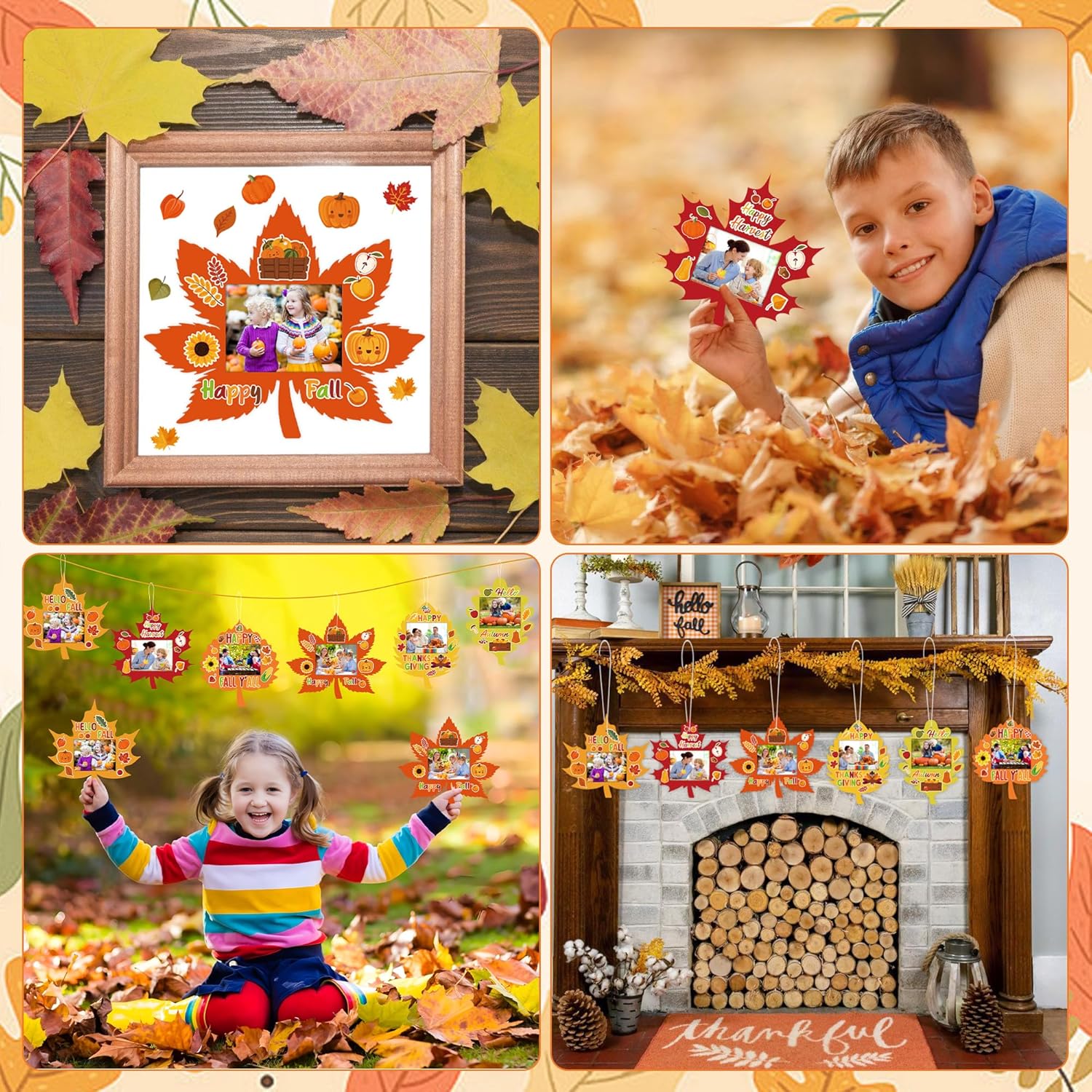 Package Includes: you will receive 24 fall maple leaf DIY picture frames (6 designs, 4 frames per design, including 2 paper cards); this fall diy photo frame craft kit comes with 24 sheets of fall stickers and 24 strings, providing ample quantities and varied designs to meet your decorating projects.