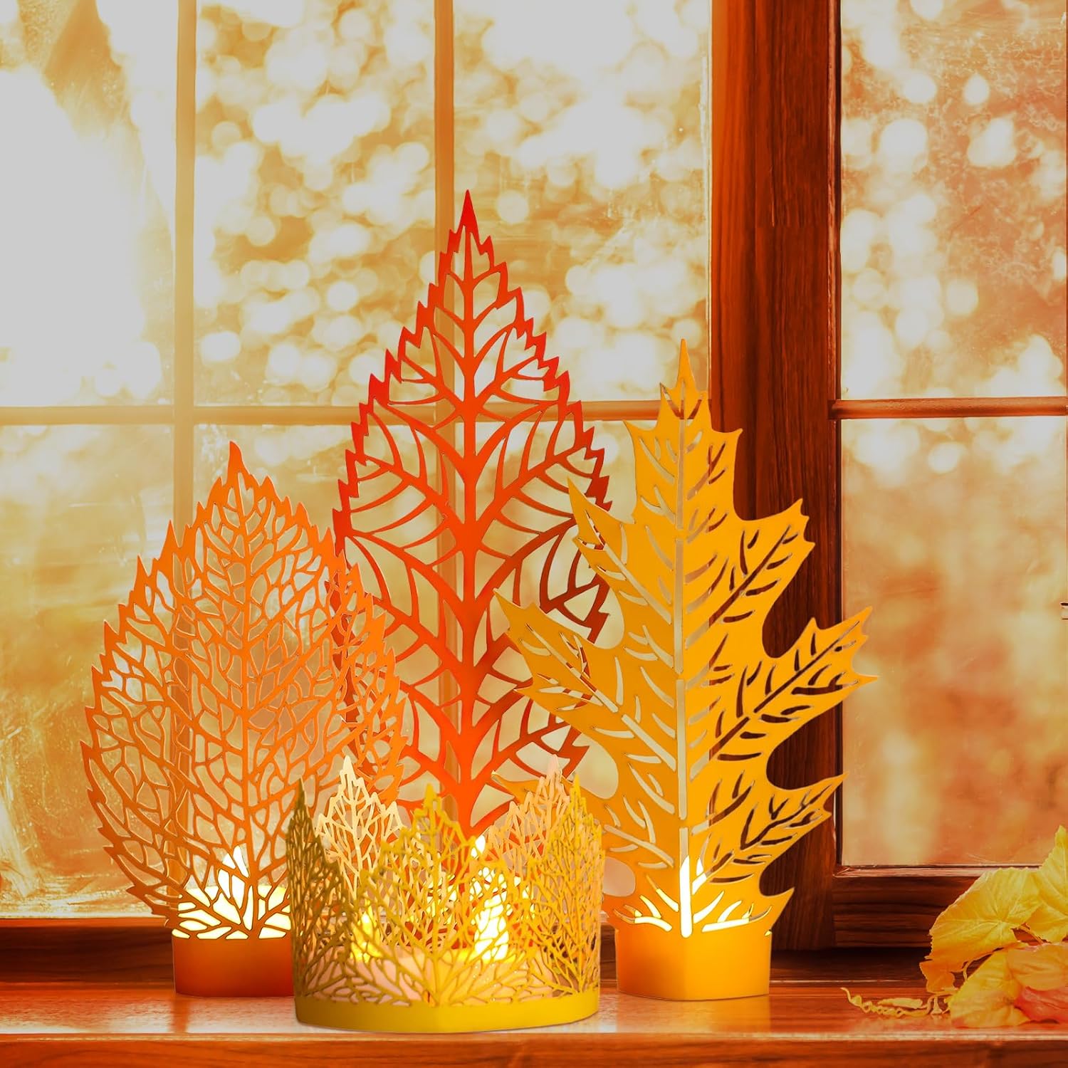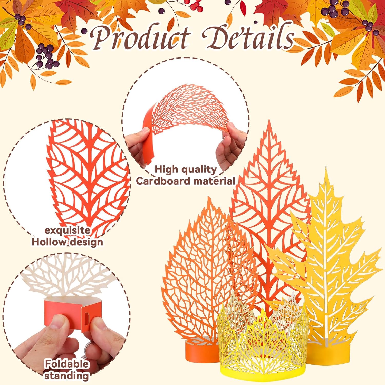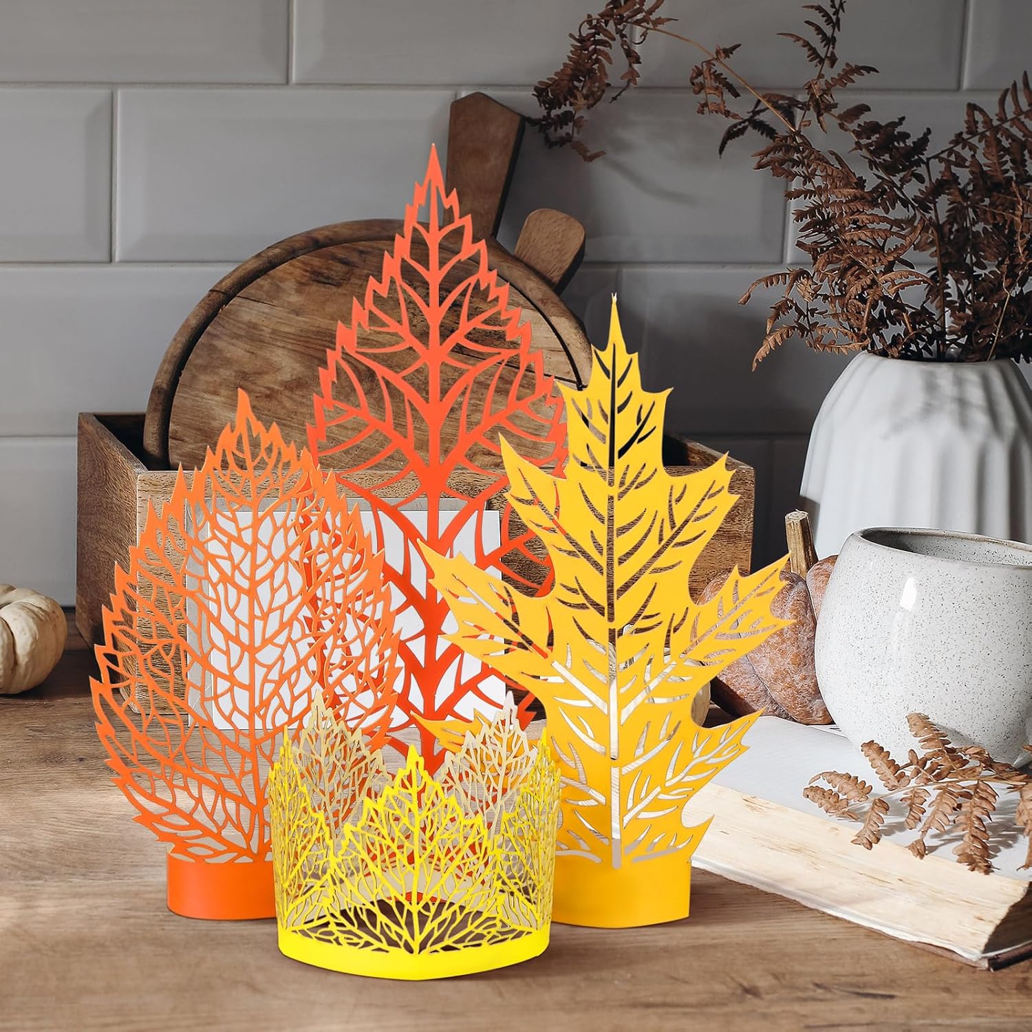 4 Pcs Fall Leaves Cutouts Table Centerpieces for Tea Light Votive Wraps Paper Candle Holder DIY Fall Decorations for LED Battery Tealight Candles Tabletop Decor for Thanksgiving Harvest Home Party