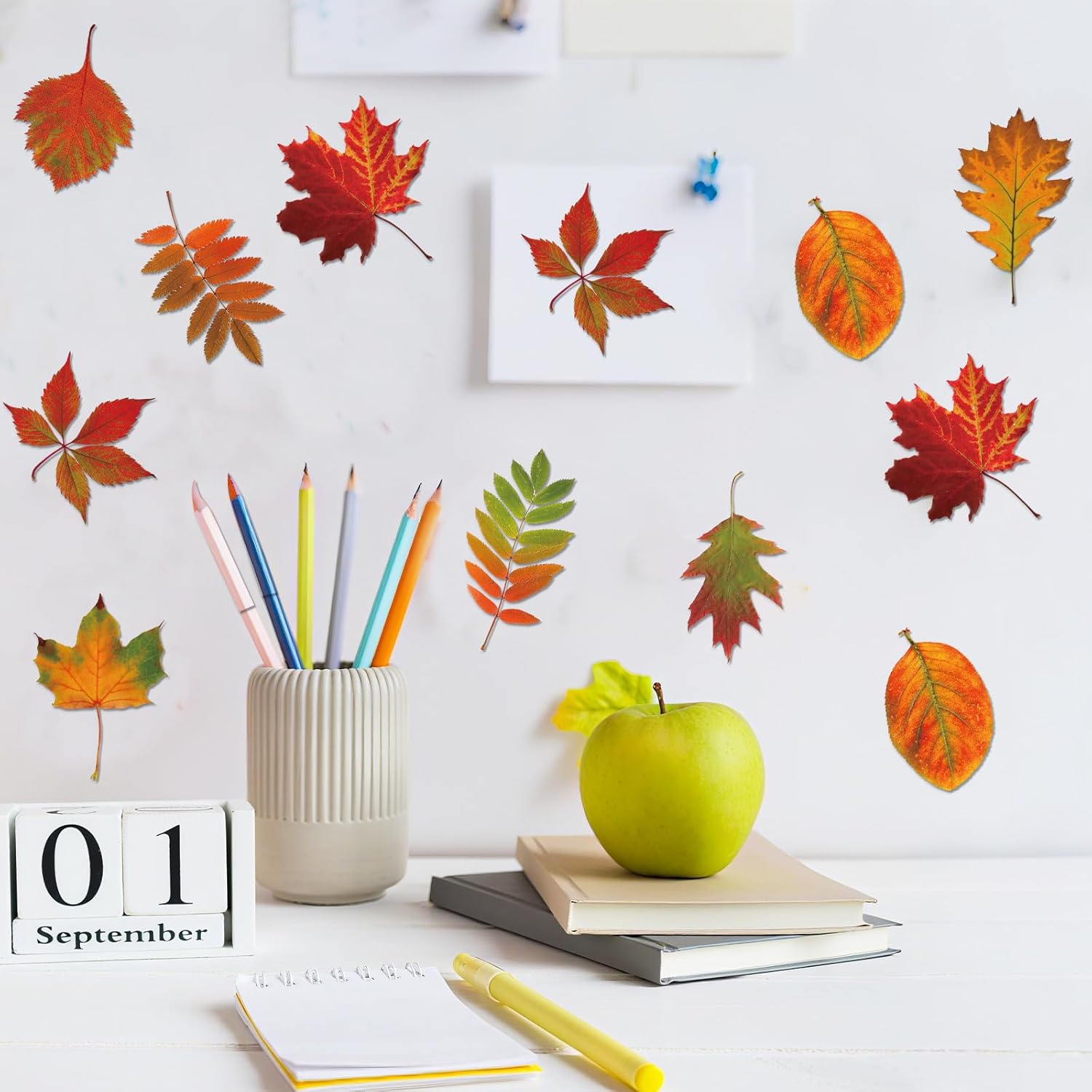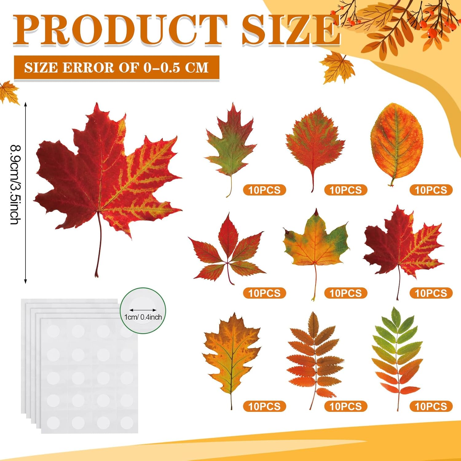 Fall Leaves Cutouts Set: you will get 90 pieces of real autumn leaves cutouts in 9 styles, each has 10 pieces, with 100 pieces of glue point dots, easy to use; Featuring sufficient quantity and complete in combination, these cutouts are suitable for decorating walls, fall and thanksgiving classroom boards, doors, desks and more