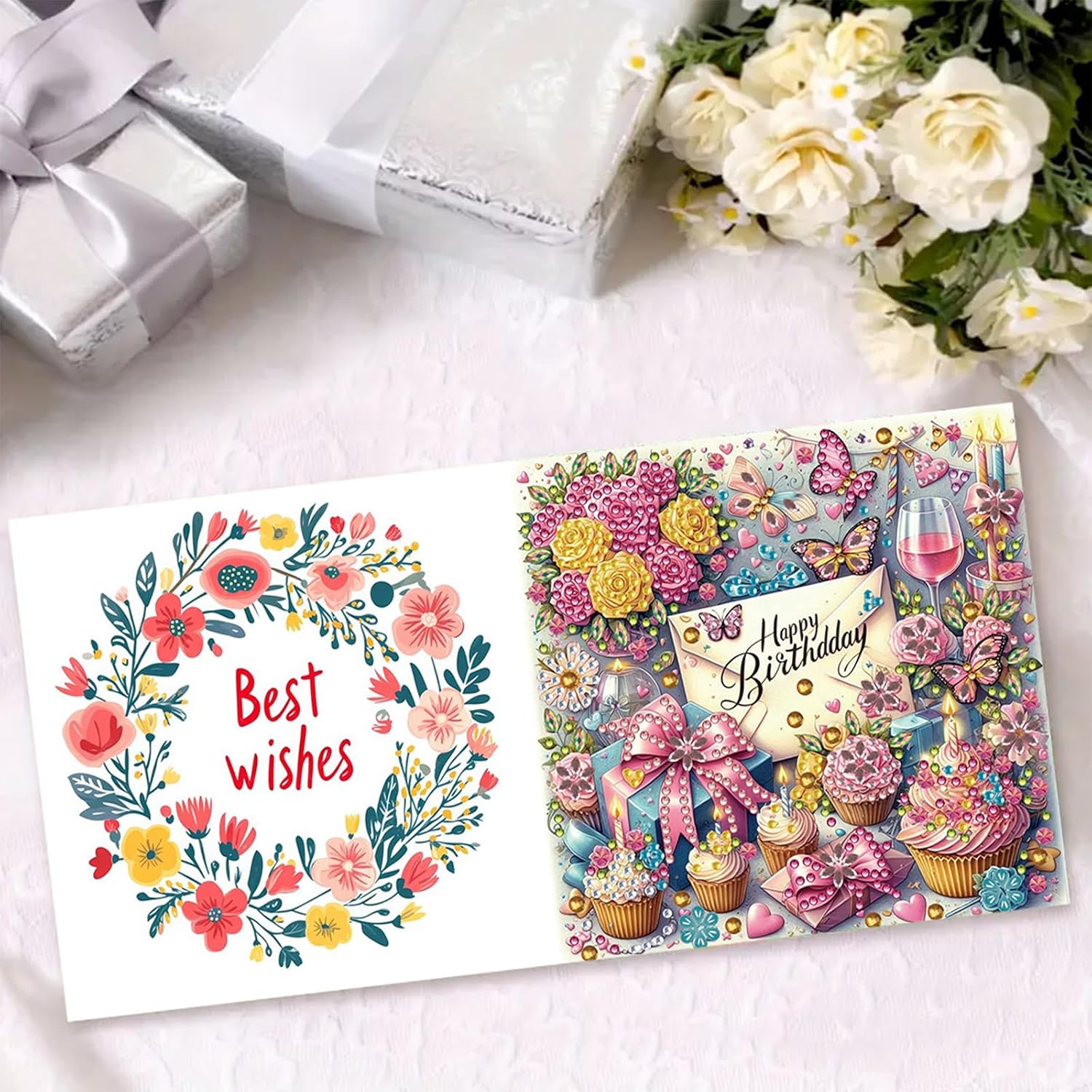 Sparkling Blank Greeting Cards: Features a foldable birthday postcard with sparkling diamonds that follow an intuitive numerical code. Perfect art project for stress relief and family bonding. Write personalized messages using any pen on these versatile diamond art painting greeting cards, enhanced by shimmering rhinestone patterns.