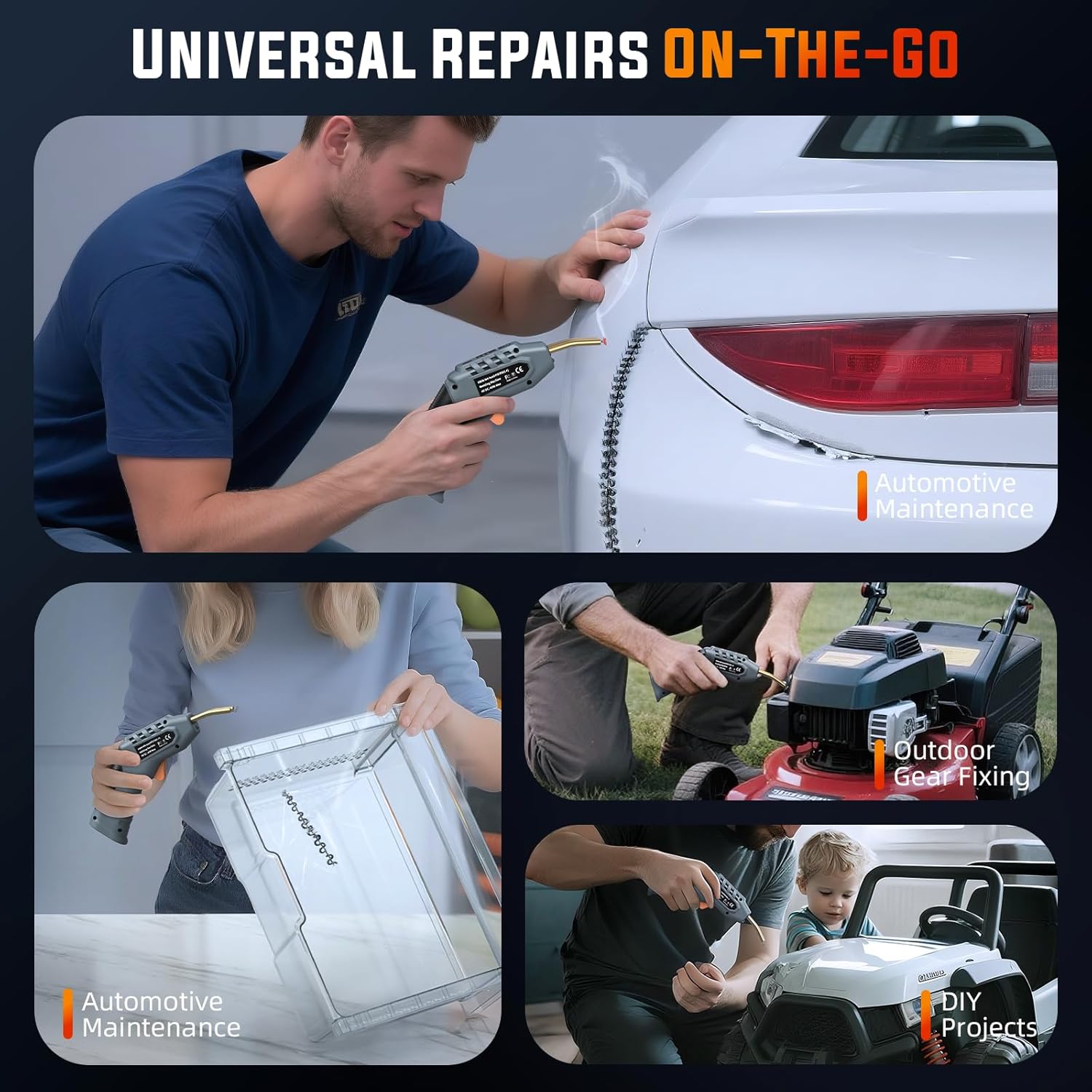 Multi-Functional Uses: This portable welder fixes most thermoplastic items—from car bumpers, dashboards, and radiators to trash bins, water tanks, and lamp holders. It works on motorcycles, kayaks, canoes, kids’ ride-on toys, and outdoor plastic furniture like chairs and slides. Perfect for DIY plastic projects too, handling materials such as ABS, PP, TPO, and TPE.