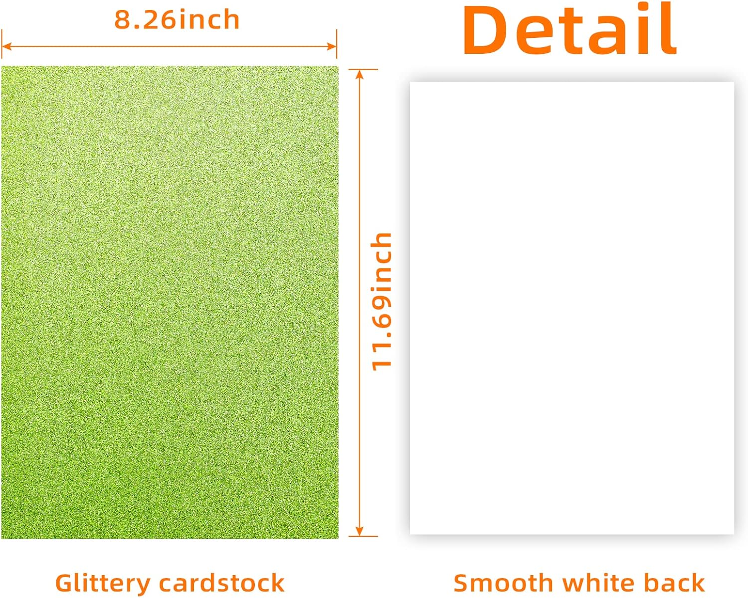 ❥ : This 30-sheet pack, 8.26 x 11.69 inches of high quality crafting paper contains 6 assorted glitter cardstock. Allowing you to put a variety of shapes on unique projects. Due to the special handling of paper, it is more durable than ordinary cardboard and not easy to deform and break.