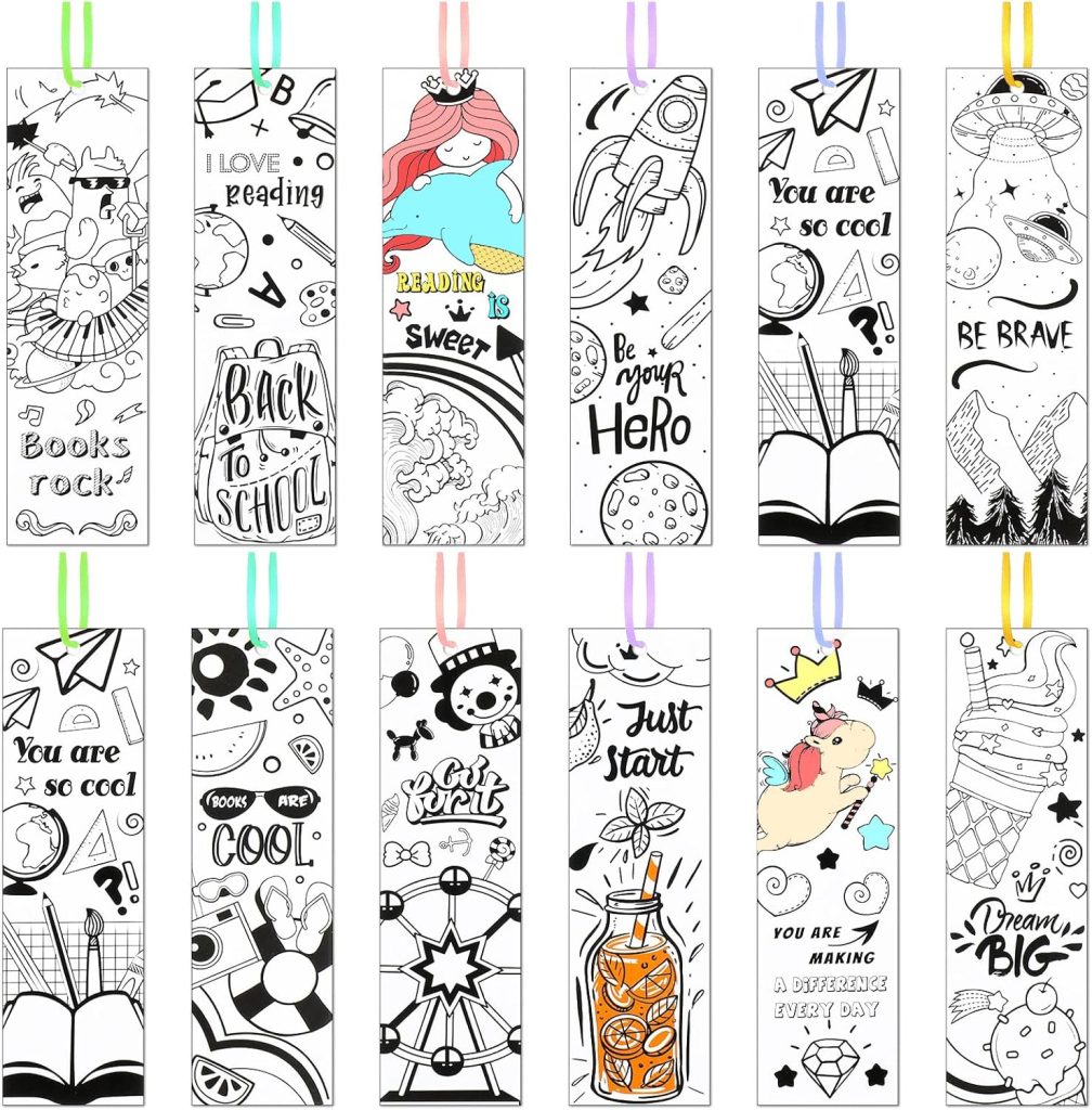 108 Pcs DIY Bookmarks for Kids Color Your Own Bookmarks Coloring Blank Inspirational, Back to School Gifts for Teachers Students Birthday Library Supplies