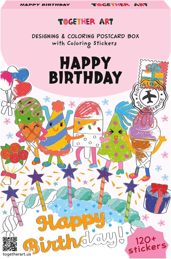 Creative Coloring Fun – Color your own stickers and decorate magical cards with Happy Birthday